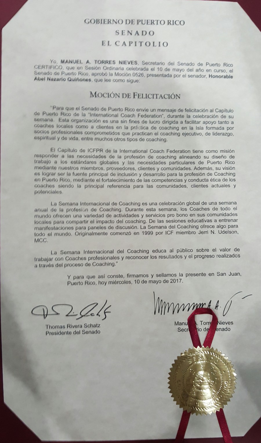 Cierre Cumbre del Capítulo de Puerto Rico de la International Coach Federation el 20 de mayo. Celebramos en La Escuela de Bellas Artes de Bayamón junto a colegas e invitados con conferencias, un evento artístico, «networking» y ricos manjares. Además, se leyó una Proclama del Senado de Puerto Rico sobre la Profesión de Coaching. Felicitaciones a todos y todas les desea la Dra. Aury Beltrán y COGLOS. 787-364-5838.