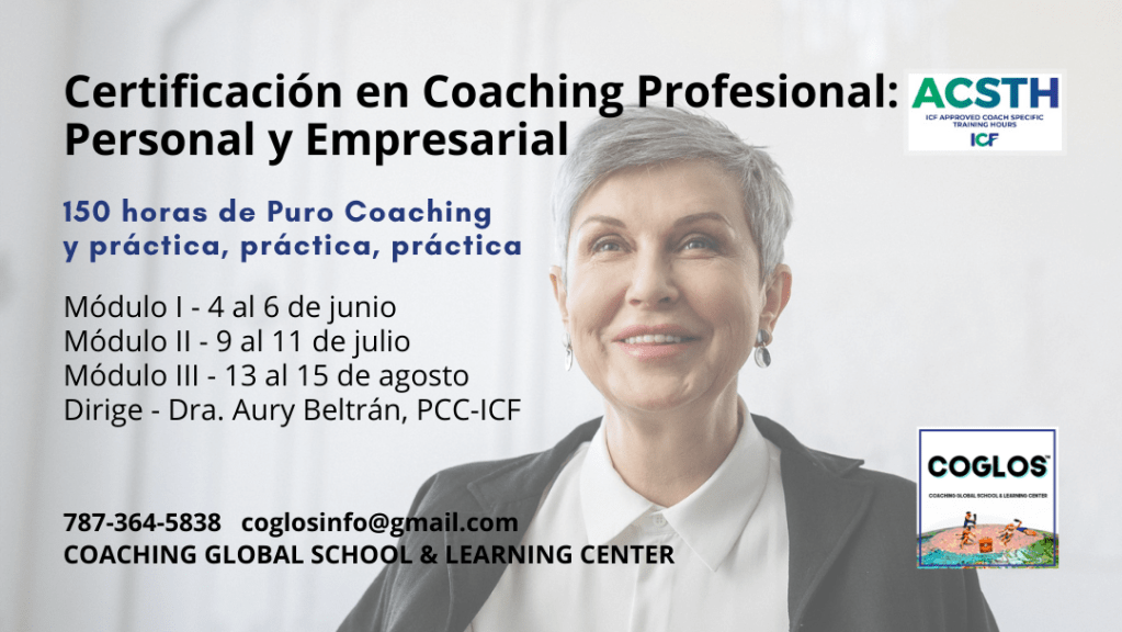 De parte de la Dra. Aury Beltrán, PCC-ICF, y el equipo de COACHING GLOBAL SCHOOL & LEARNING CENTER (COGLOS)™.